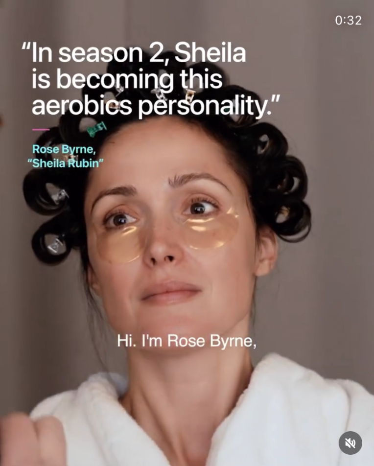 In 2021, Apple TV+ asked for a social media campaign to promote the show, Physical, starring Rose Byrne. Her character, Sheila Rubin, is plagued by a critical inner monologue and these thoughts take on a character of their own. We came up with a miniseries on Instagram called “Unmute Sheila”. Each clip would tease the upcoming episode, and encourage viewers to literally unmute her thoughts. Additional social content included “Tune-In” clips, a Giphy series for talent to share, and “Sheila Reviews Sheila” posts that showcased quotes of critics’ reviews alongside Sheila’s own inner critiques.