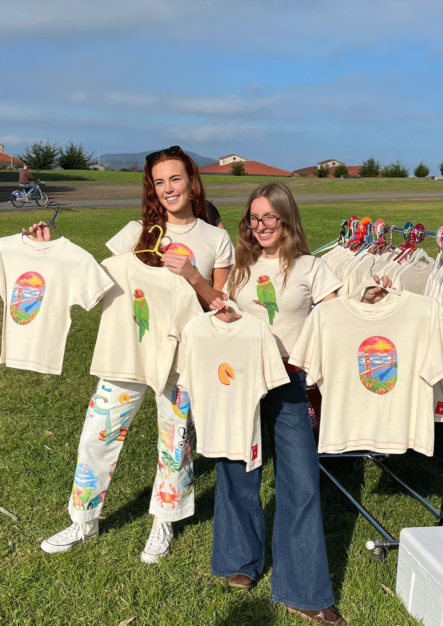 A local clothing brand reached out after seeing the video series on Tiktok and asked if I wanted to collaborate on a line of t-shirts. I hand-painted a bridge, parrot, and fortune cookie and launched them with Fruitface on November 2025!